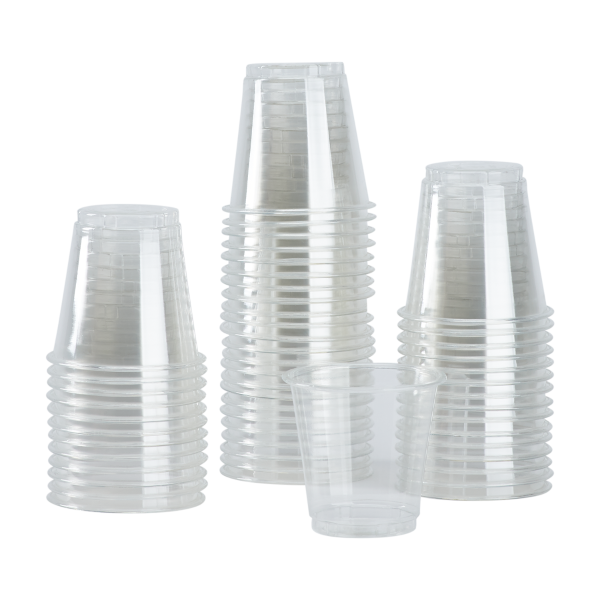 Clear Karat 3oz PET Plastic Cold Cups stacked