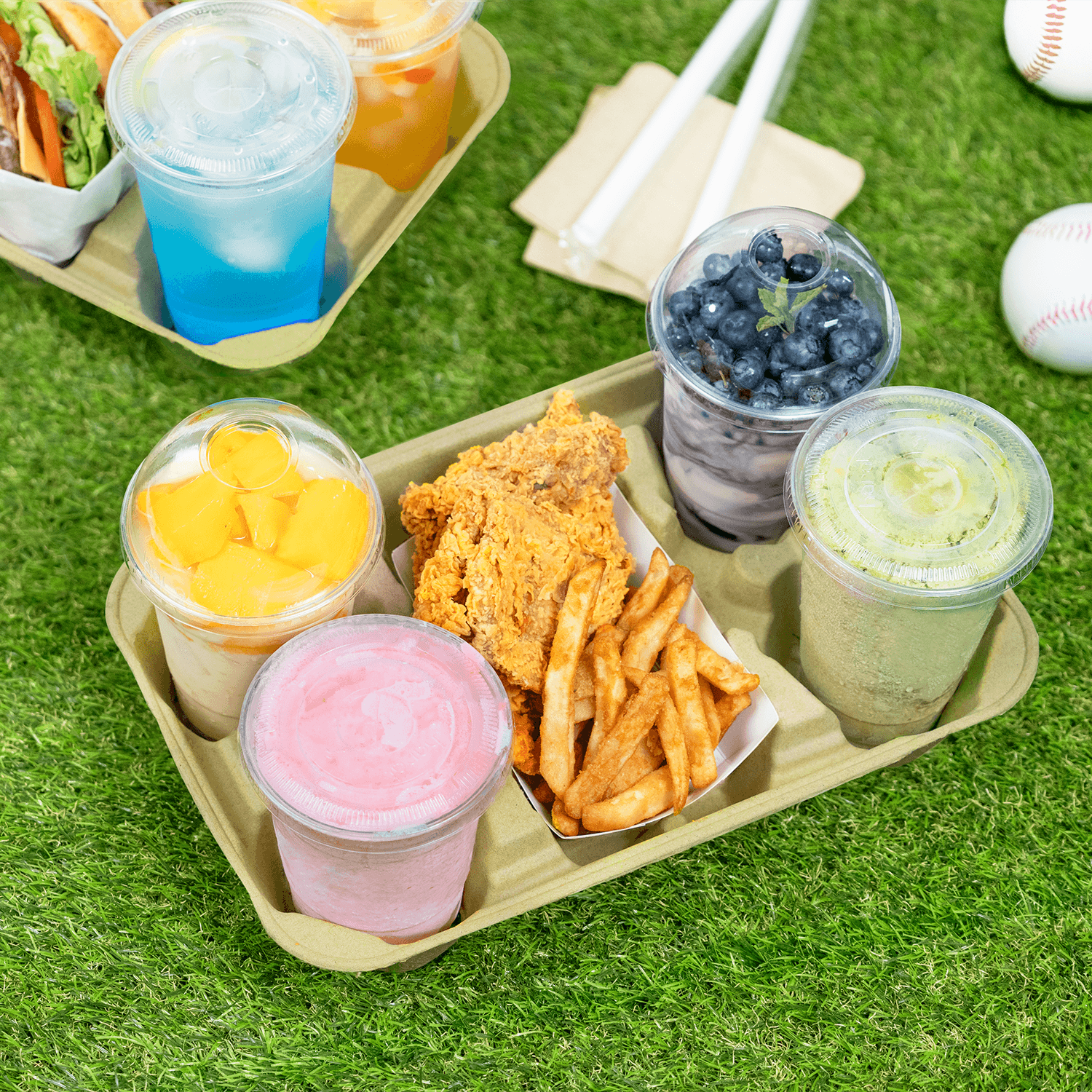 4 Cup Karat Biodegradable Cup Holder with different types of cups