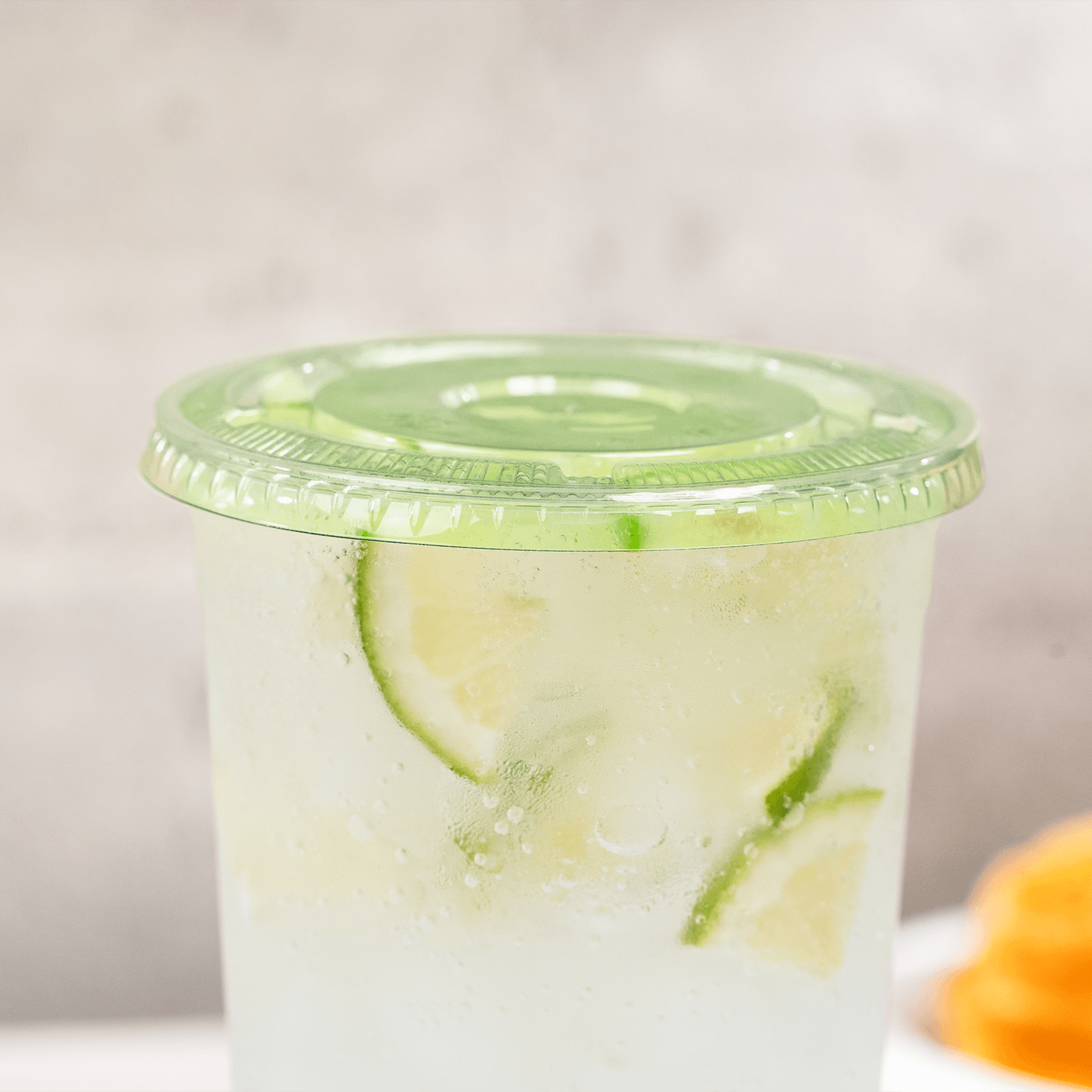 Karat Earth 12-22oz PLA Lids with matching cup and yellow drink