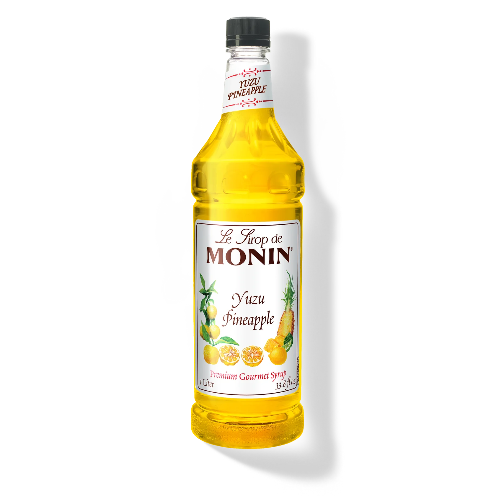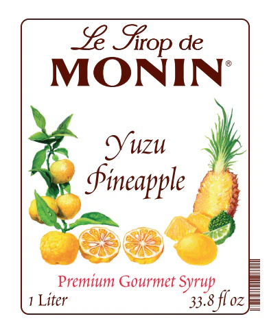 Monin Exotic Citrus Syrup in clear plastic 1 L bottle