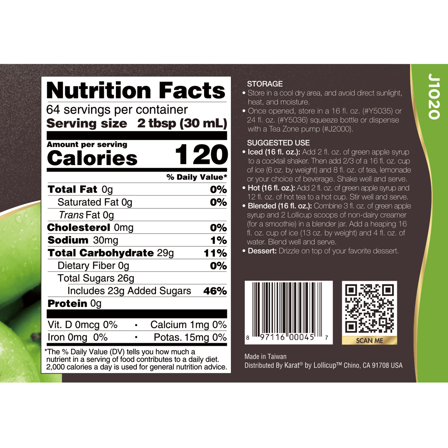 Fructose, Green Apple Syrup, Sugar, Malic Acid, Xanthan Gum, Green Apple Flavor, Potassium Sorbate, Sodium Citrate