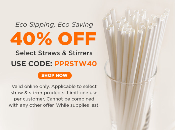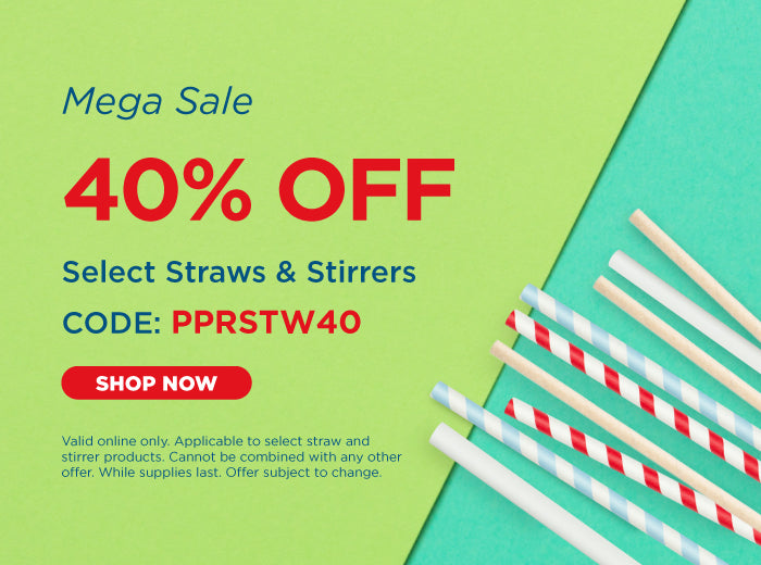 Disclaimer: Valid online only. Applicable to select straw & stirrer products. Cannot be combined with any other offers. While supplies last. Offer subject to change.