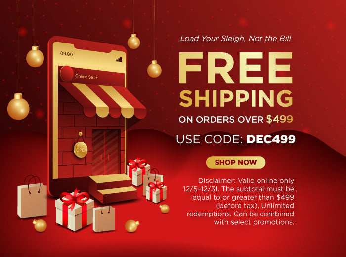 Disclaimer: Valid online only 12/5 – 12/31. The subtotal must be equal to or greater than $499 (Before Tax). Unlimited redemptions. Can be combined with select promotions.