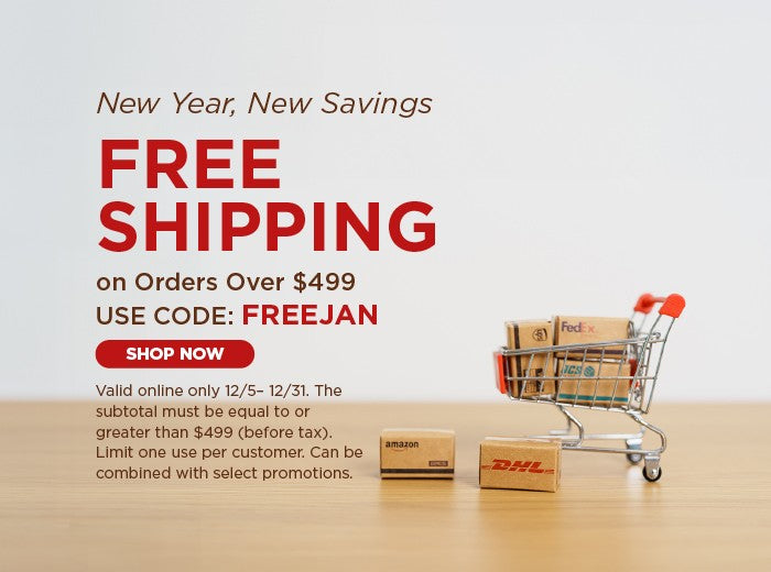 Valid online only 01/01 – 01/31. The subtotal must be equal to or greater than $499 (before tax). Limit 1 use per customer. Can be combined with select promotions.
