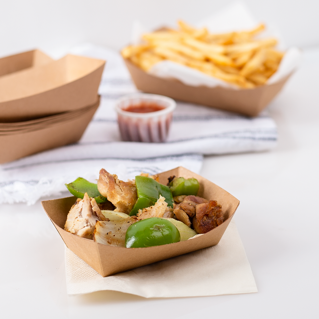 Available in six convenient sizes, Karat Paper Food Trays are ideal for food trucks, festivals, parties, school lunches, or quick-service restaurants. Whether for dine-in, grab-and-go, or catered events, these trays deliver both function and presentation.