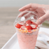 Karat crystal-clear RPET dome lids are designed with a convenient straw hole for effortless sipping on the go. With a 98mm diameter, these lids create a secure, spill-resistant fit for 12oz, 16oz, 20oz, and 24oz rPET cold cups, making them the perfect choice for a variety of beverages. The spacious dome design accommodates generous toppings like whipped cream, fresh fruit, or boba, enhancing presentation while maintaining drink integrity.