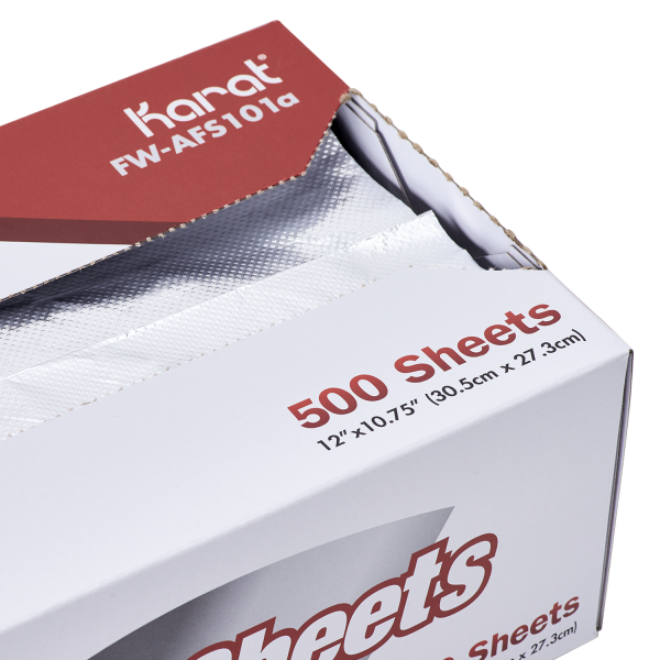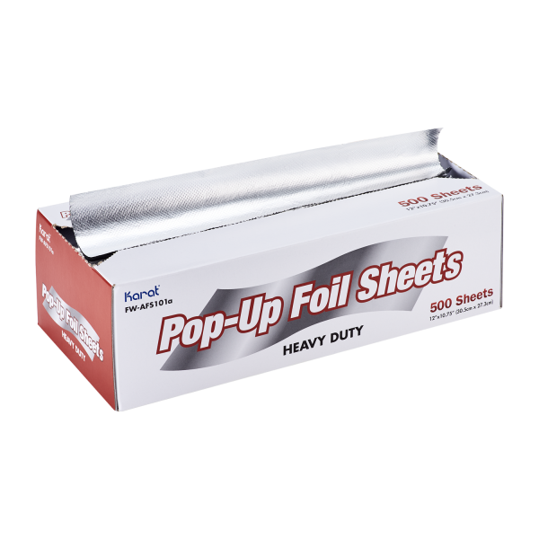 Wrap up to-go items or your left over food and ingredients in Karat® heavy-duty aluminum foil pop-up sheets! Pre-cut sheets allow for quick and easy use for catering services, restaurants and more. Foil pop-up sheets will maintain the temperature of your hot or cold foods. They are oven-safe, heavy-duty and leak-resistant. Our heavy-duty sheets are thicker and stronger for less breakage.