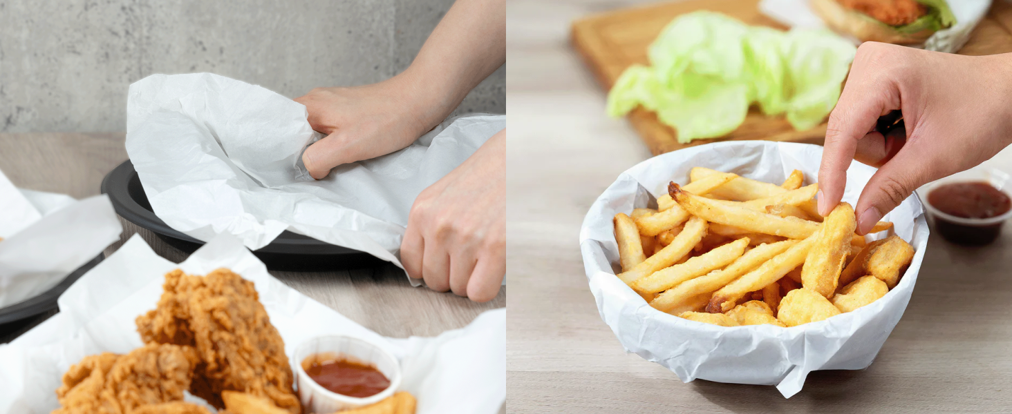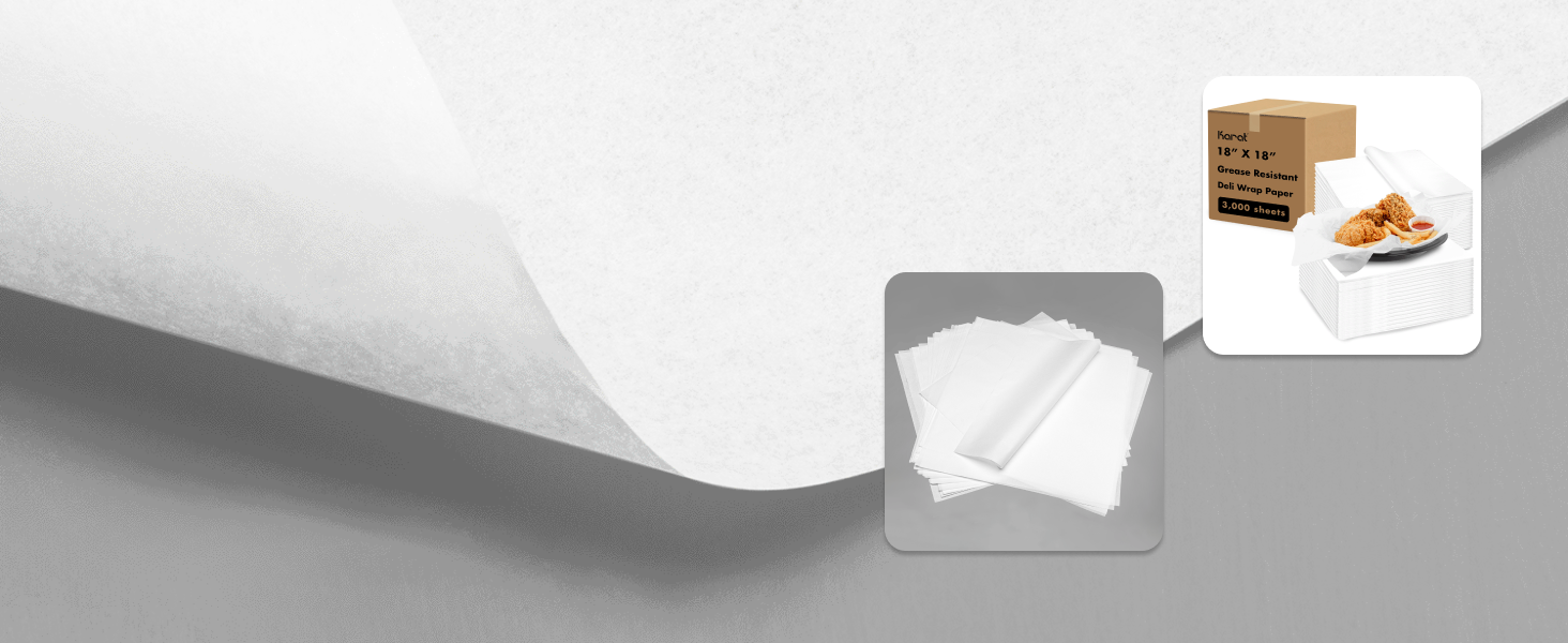 Wrap food and line baskets with grease-resistant paper sheets from Karat. These pre-cut sheets will keep your food presentation clean. Shop kraft or white colors. Custom printing is available.