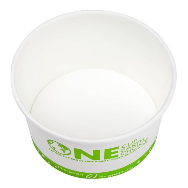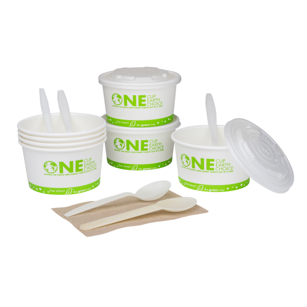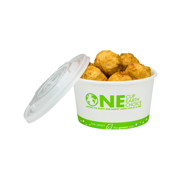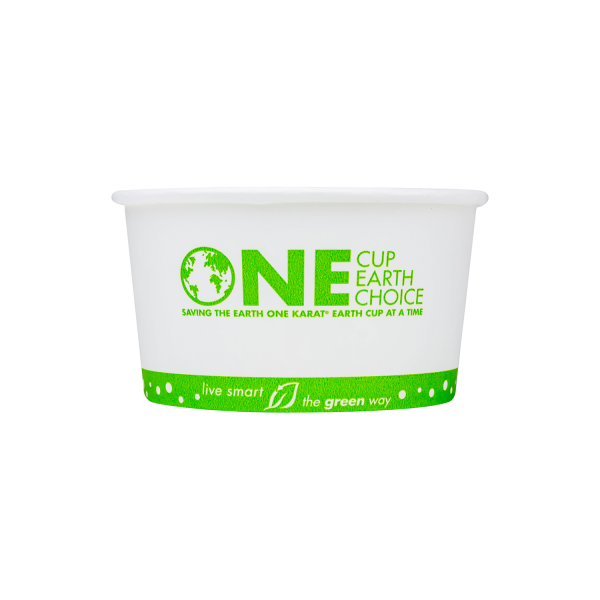 Karat Earth Paper Food Containers are made from renewable resources and designed specifically for use with hot or cold food. These eco-friendly paper food containers are great for ice cream, yogurt, gelato, noodles, and salad. Food containers come with Karat Earth's generic "One Cup, One Earth, One Choice" print.