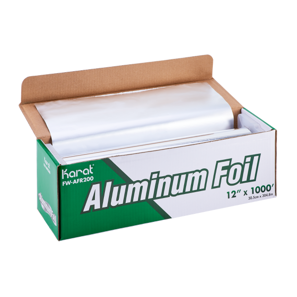 Treat your kitchen with quality with Karat's 12"x1000' Standard Aluminum Foil Roll! This standard weight roll is perfect for everyday use and is sure to make clean-up a breeze. Whether it's for food prep, leftovers, or to-go, you will always have the perfect size. It comes with a serrated knife for easy tearing. Be prepared for any culinary situation with Karat's reliable protection!