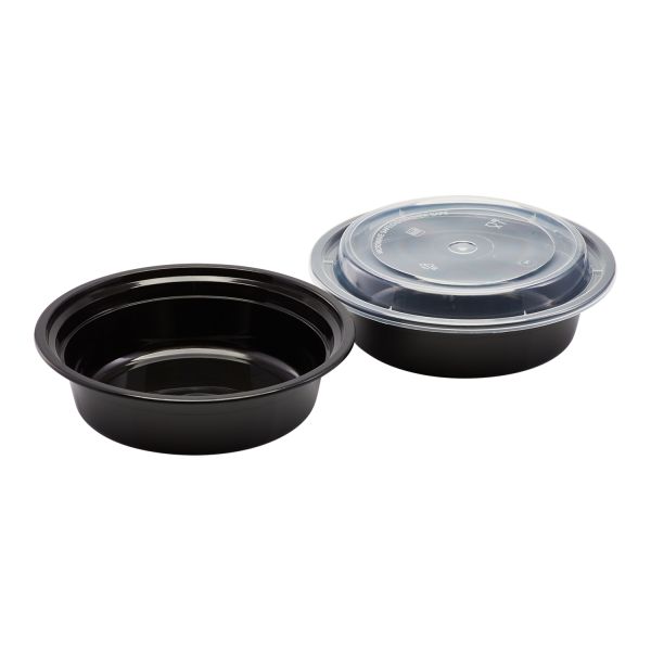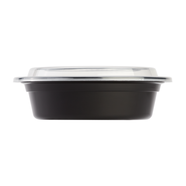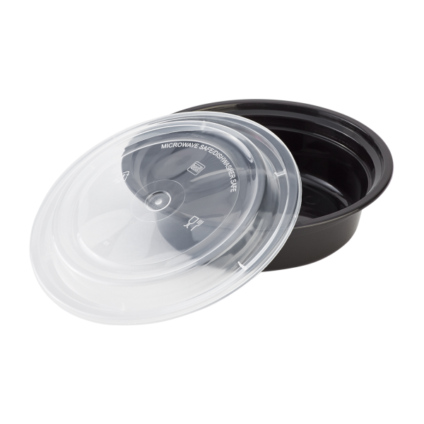 Karat round and rectangular black, PP injection molded containers and lids are great for takeout and leftovers. These containers are available in multiple sizes, and with multiple compartments. Containers are microwavable and dishwasher safe.