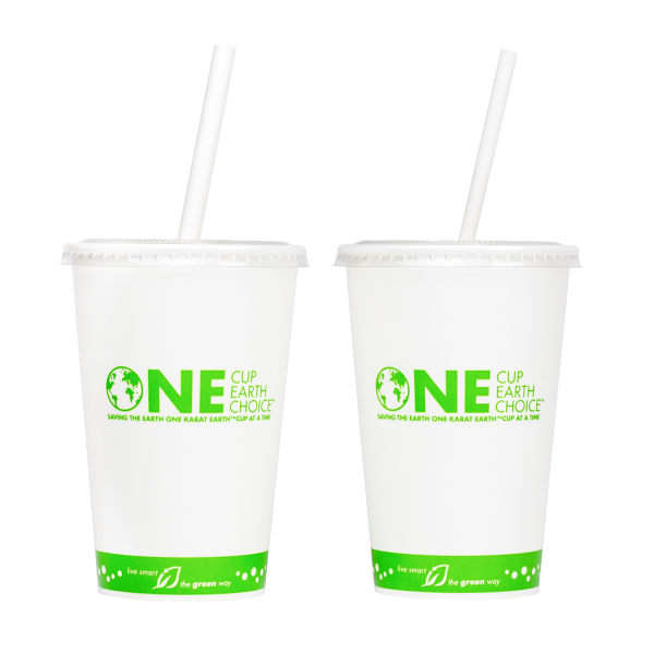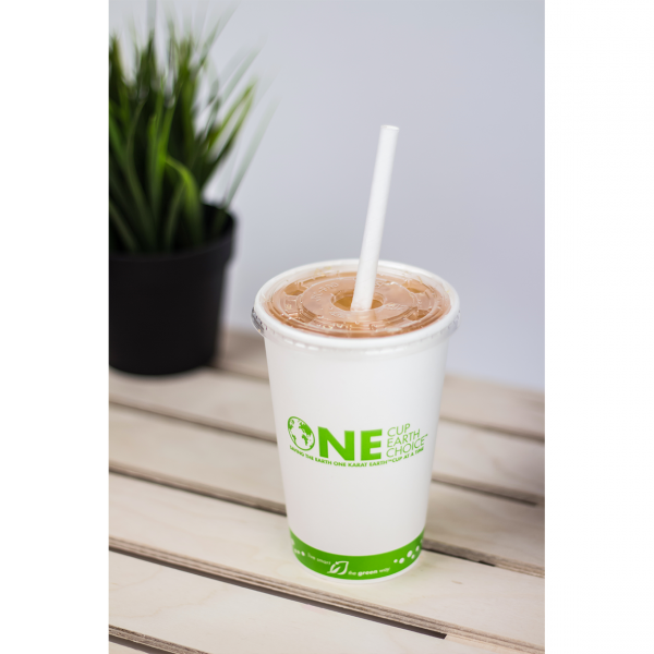 Karat Earth cold cups are perfect for serving your cold beverages from fountain drinks to smoothies. They feature our eco-friendly Karat Earth stock print One Cup, One Earth, One Choice. The cups are PLA lined on the interior and exterior to keep your beverages cold and to protect against condensation. The rolled rims have a smooth exterior finish.