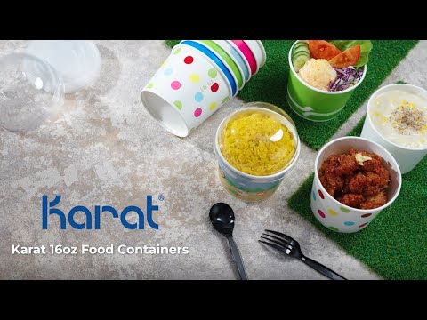 Karat Paper Food Containers are designed for use with hot or cold food and are great for ice cream, yogurt, gelato, noodles, and salad. All of our food containers feature a double poly lining for added resilience and to prevent leaking.
