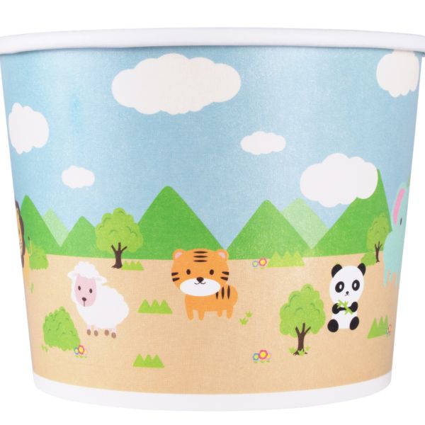 Go wild with Karat Safari printed paper food containers. This fun, kid-friendly design is sure to grab attention and entertain. Karat food containers are perfect for storing hot or cold foods, snack items and small meals such as ice cream, yogurt, gelato, crackers, and fruit. All Karat food containers feature a double poly lining for added resilience and to prevent leaking.