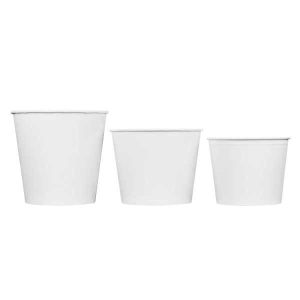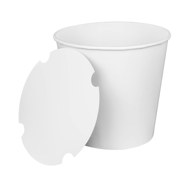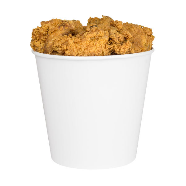 Karat 170oz Food Buckets are specifically designed for storing foods such as fried chicken, popcorn, and pastries for take out. Buckets come with matching flat paper lids that fit into a grove around the top of the bucket.