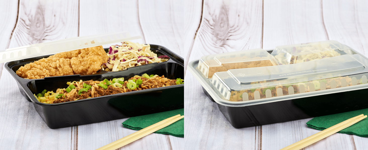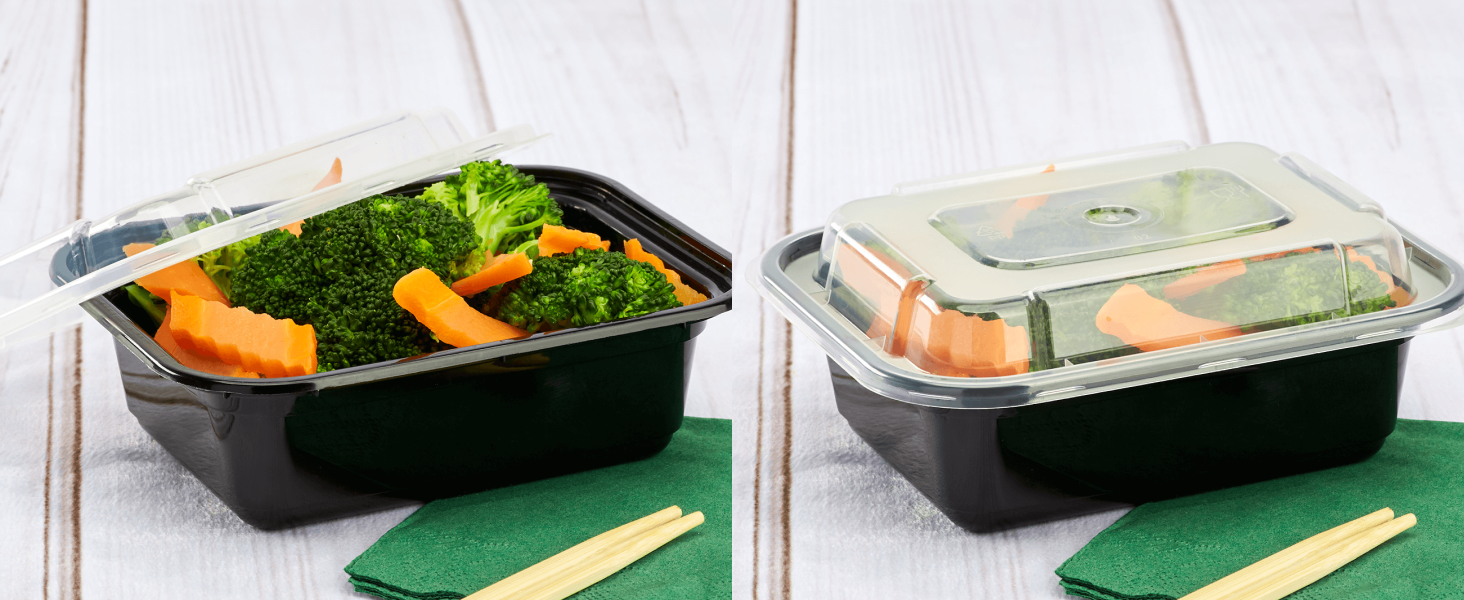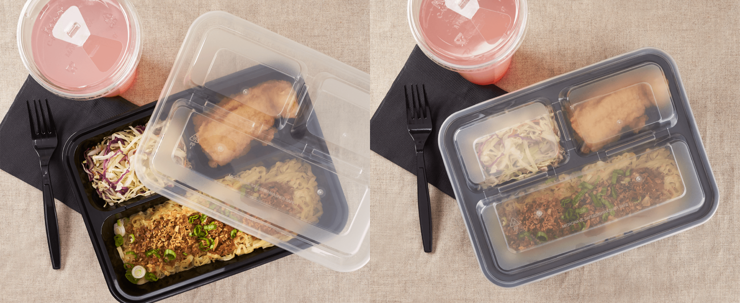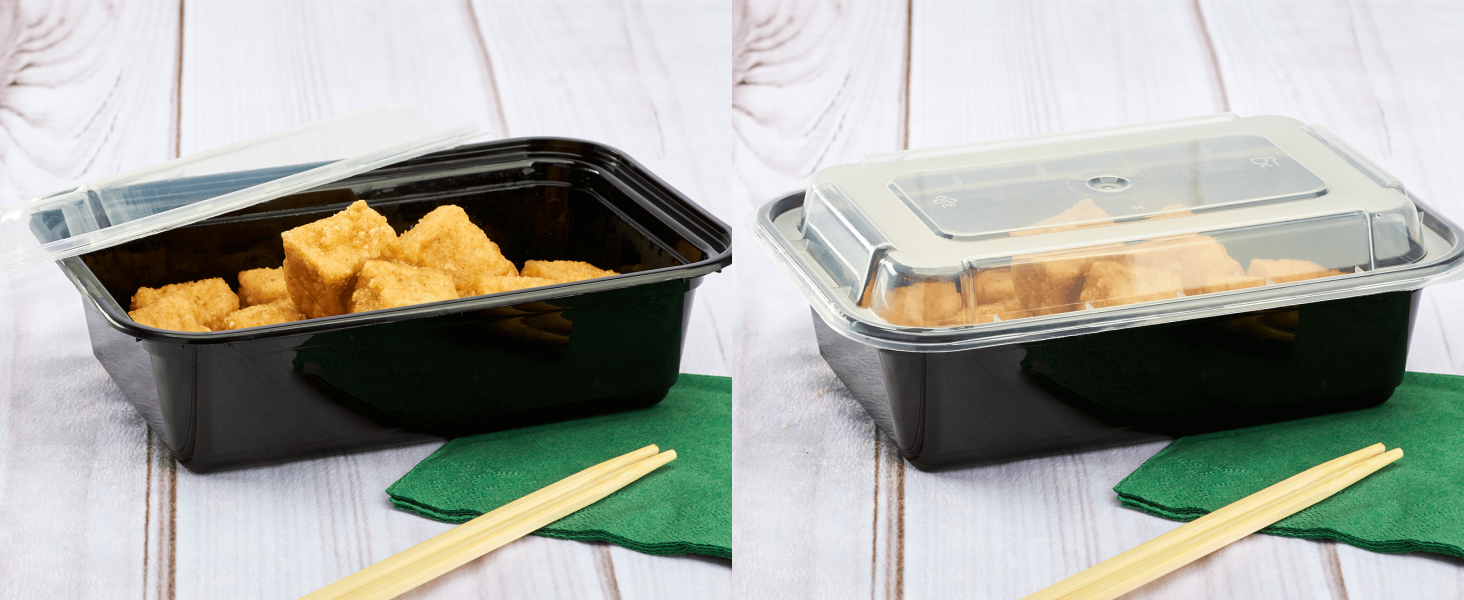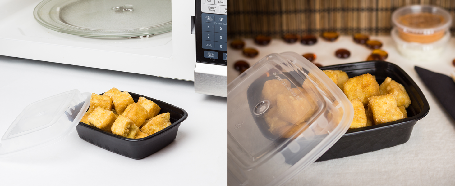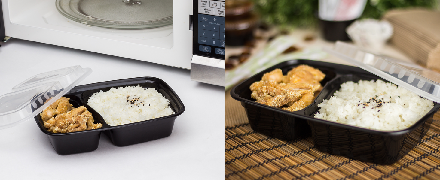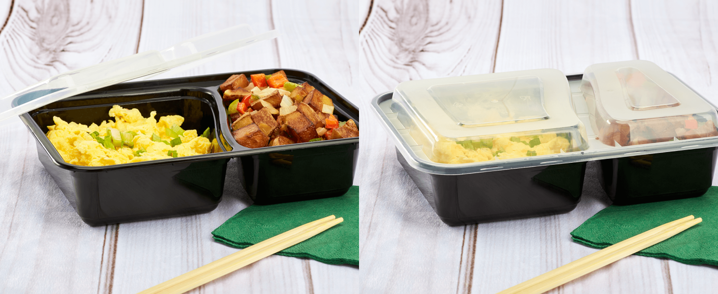 Karat round and rectangular black, PP injection molded containers and lids are great for takeout and leftovers. These containers are available in multiple sizes, and with multiple compartments. Containers are microwavable and dishwasher safe.