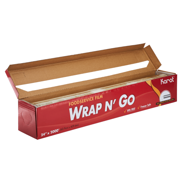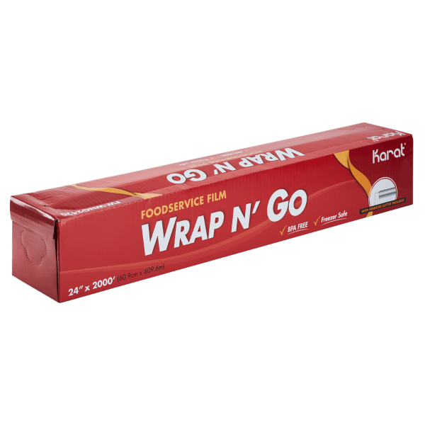 Karat® Foodservice Film is perfect keeping your food fresh or other products covered. This film is equipped with a convenient, serrated cutter that will provide quick cutting for efficient business operations. Each foodservice film is BPA-Free and is safe to put into the freezer. The foodservice film effortlessly clings, so it can seal the food or product until you are ready to use them! Also available in 2 other sizes to fit your food business’s needs.