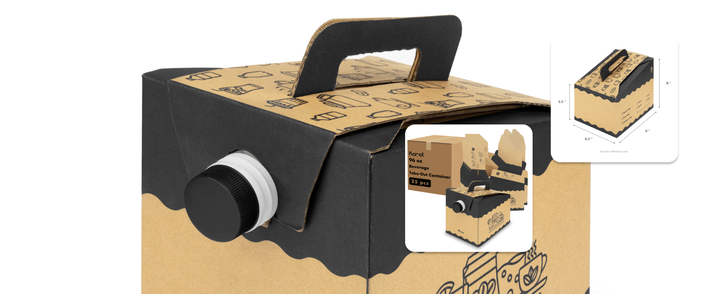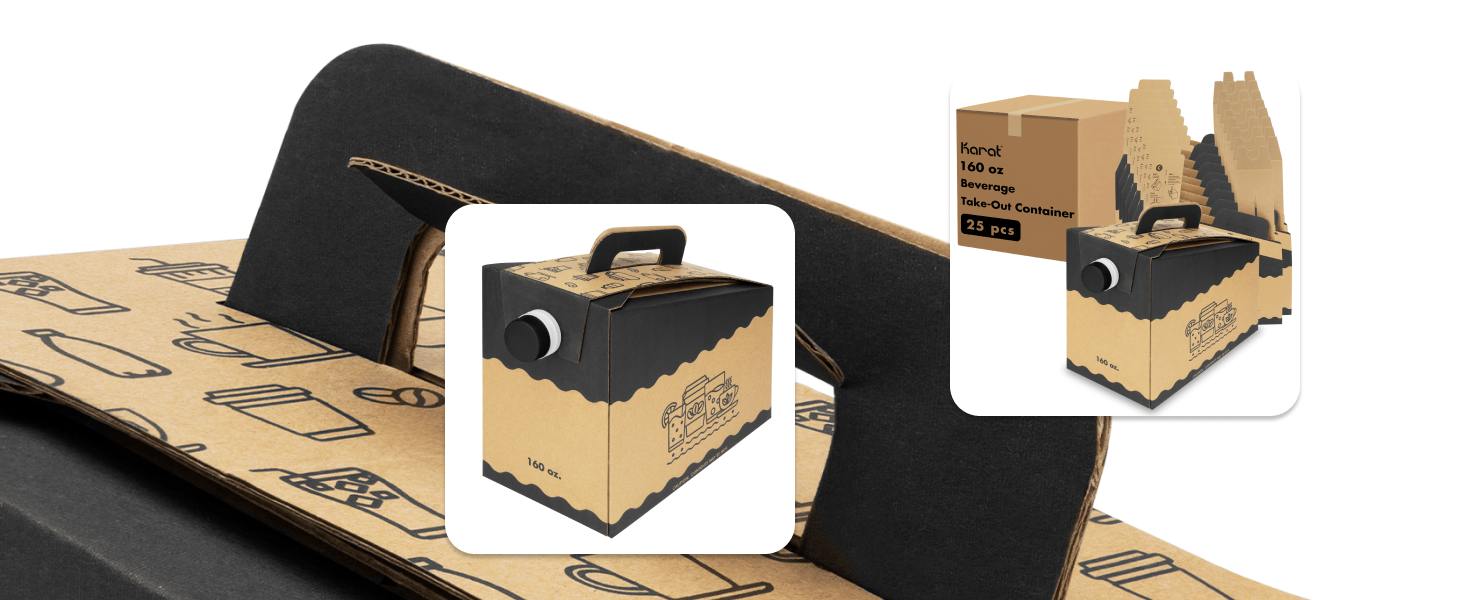 Karat Beverage Take-Out Containers are the perfect solution for serving large volumes of hot or cold drinks with ease. Available in 96 oz, 128 oz, and 160 oz sizes, these containers are ideal for coffee shops, catering services, offices, or events looking to offer beverages in a convenient, grab-and-go format.