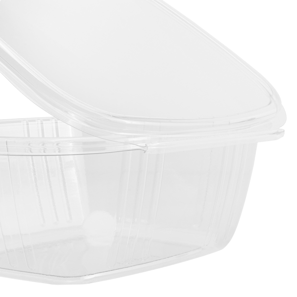 Karat PET Hinged Deli Container is perfect for pasta salads, fruit, deli sides and more! This hinged deli container is great for sealing and taking your food to go. Perfect for the deli counter or packing meals at home.