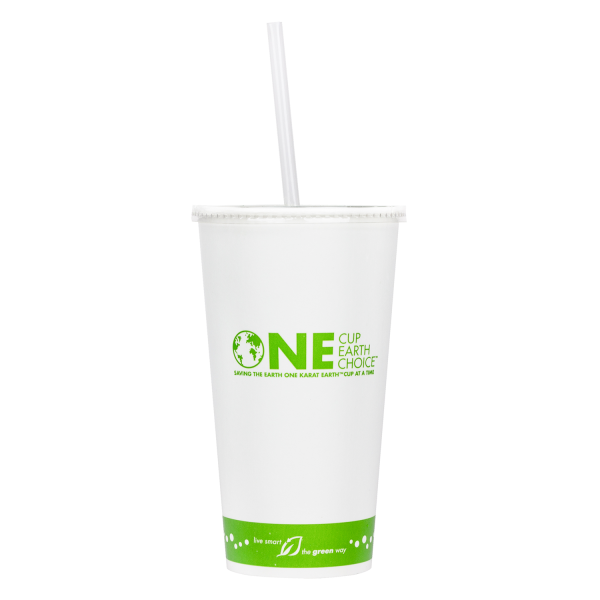 Karat Earth cold cups are perfect for serving your cold beverages from fountain drinks to smoothies. They feature our eco-friendly Karat Earth stock print One Cup, One Earth, One Choice. The cups are PLA lined on the interior and exterior to keep your beverages cold and to protect against condensation. The rolled rims have a smooth exterior finish.