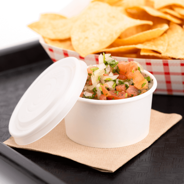 Karat Earth 4oz Eco-Friendly Paper Portion Cups make it easier to serve sides, salsas and sauces to go without plastic waste.