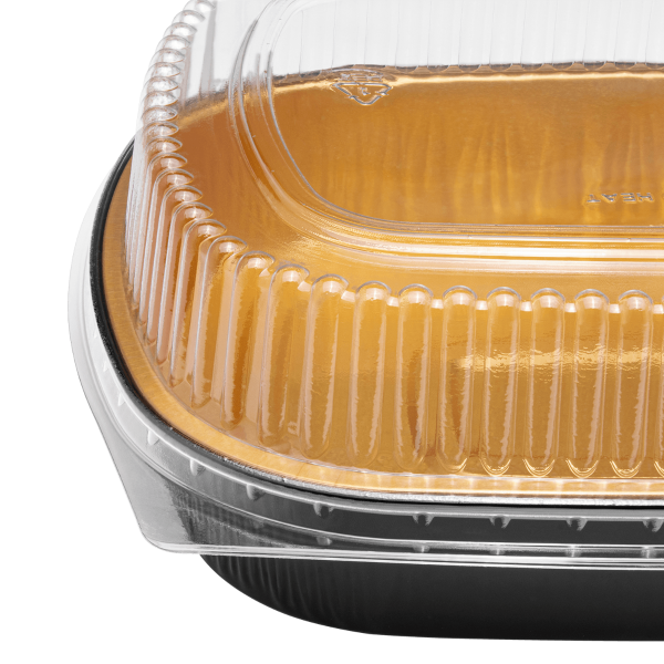 Baked mac and cheese, green bean casserole, or mini lasagnas are foods that need a sturdier leak-proof container that can be placed in the oven for easy reheating. The Karat 48 oz Black and Gold Aluminum Pans are the restaurant supplies you are missing! They are oven and grill safe containers that are also great for packing up comfort foods to go. The elegant black and gold design conveys a high-end standard for your restaurant.