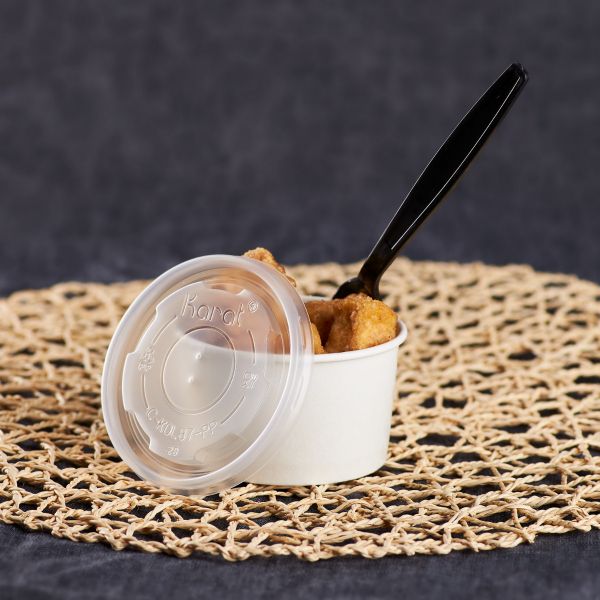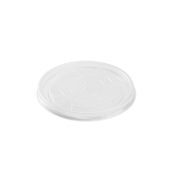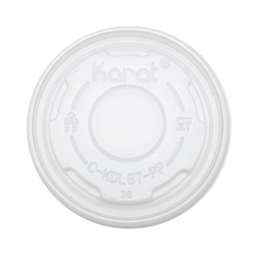Karat high quality polypropylene (PP) flat lids are design to fit Karat double poly paper cold/hot food containers.