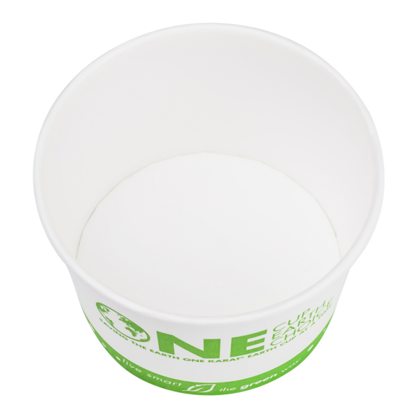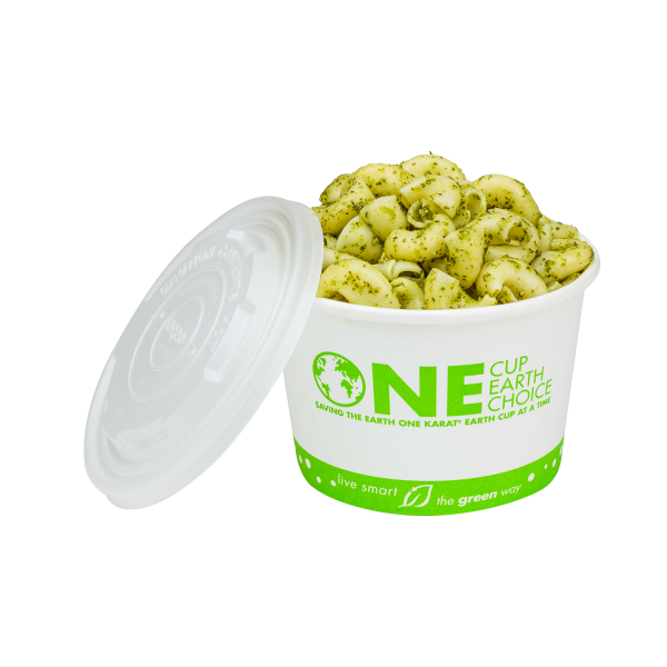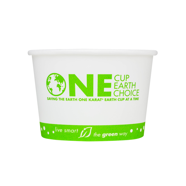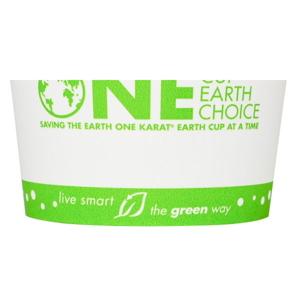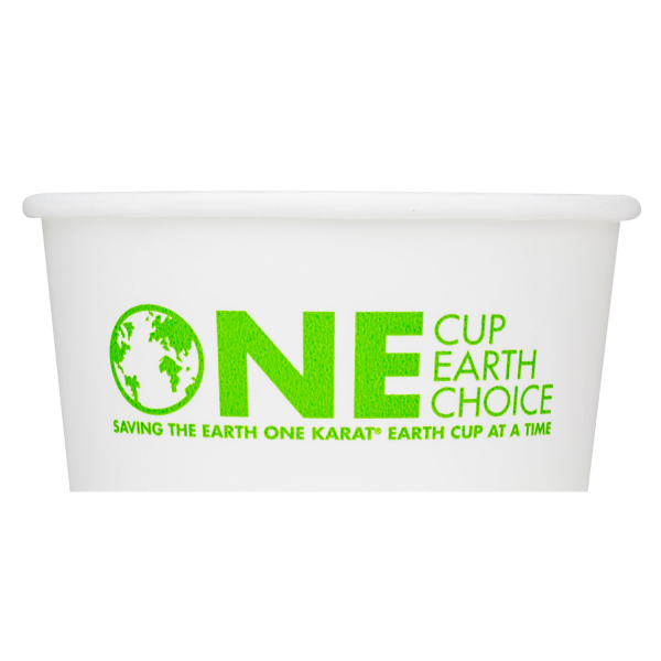 Karat Earth Paper Food Containers are made from renewable resources and designed specifically for use with hot or cold food. These eco-friendly paper food containers are great for ice cream, yogurt, gelato, noodles, and salad. Food containers come with Karat Earth's generic "One Cup, One Earth, One Choice" print.