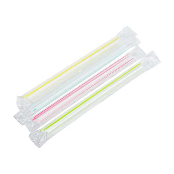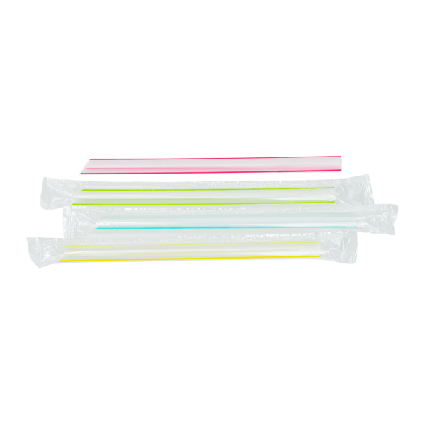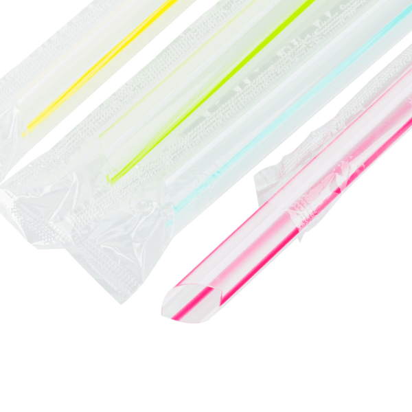 [2,000 ct] Clear Boba Straws | Individually Wrapped | Mixed Stripes (0.39" x 7.5")