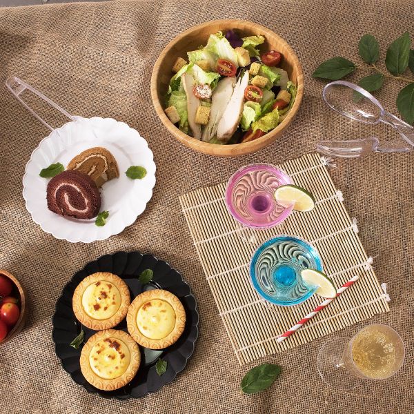 Karat® scalloped PS plastic plates are a sturdy option for serving delicious appetizers, entrees and desserts. These plates are perfect for catering special events, including parties, banquets and much more.