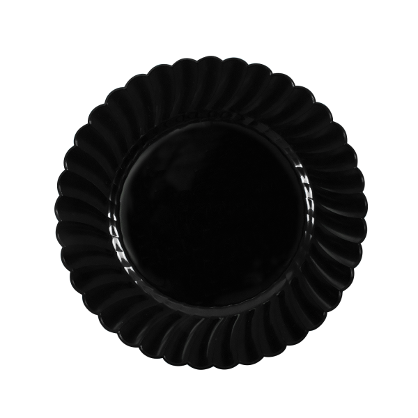[240 ct] 7" Black Scalloped Plastic Plates | PS