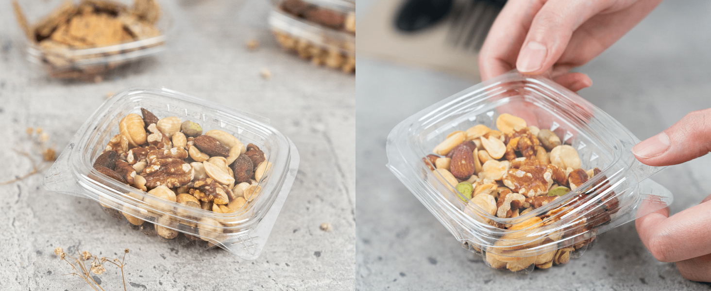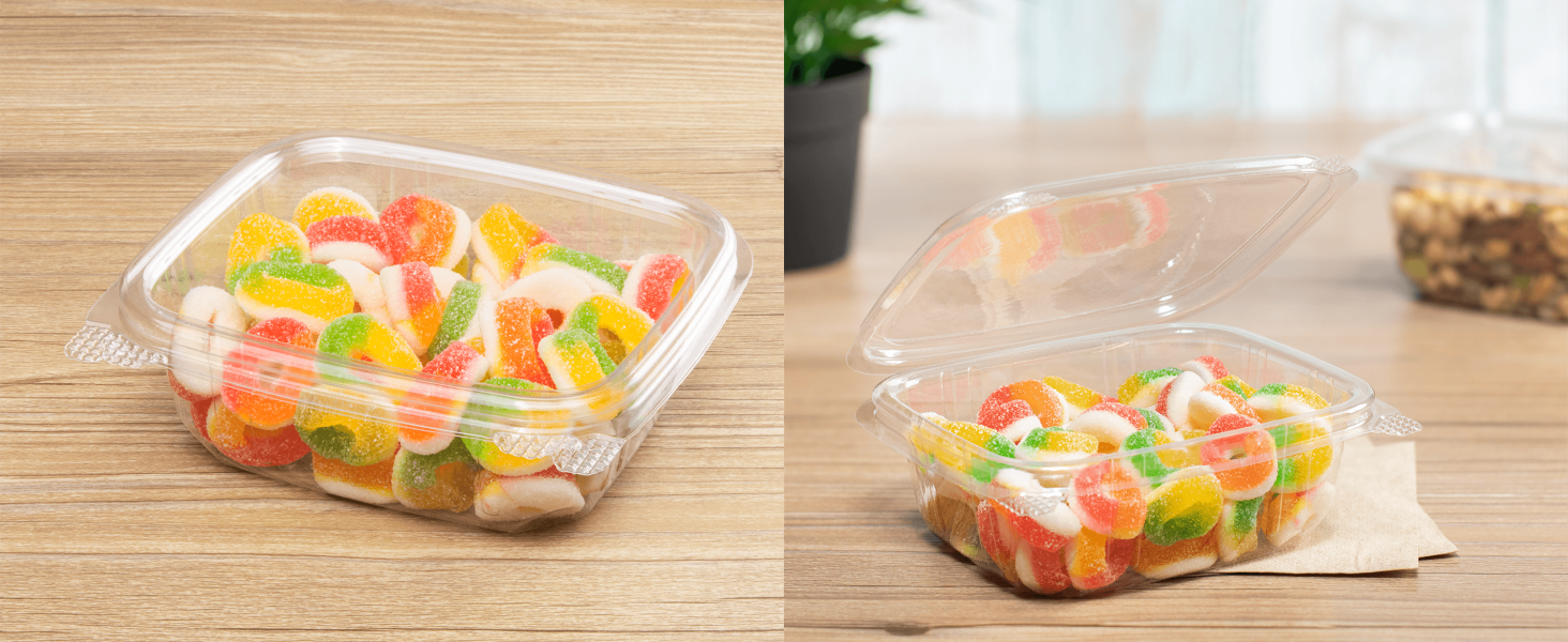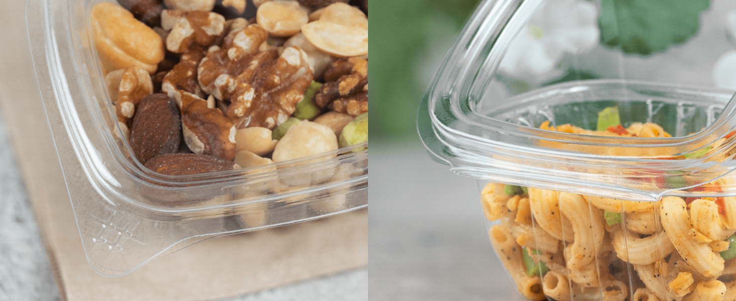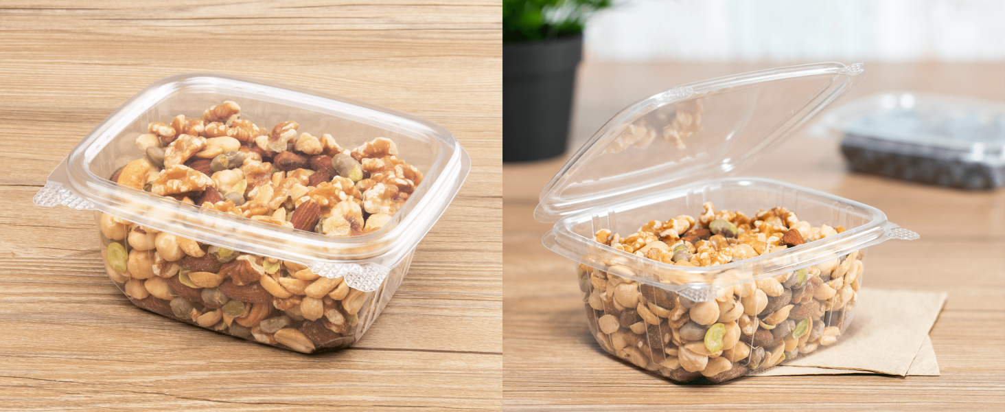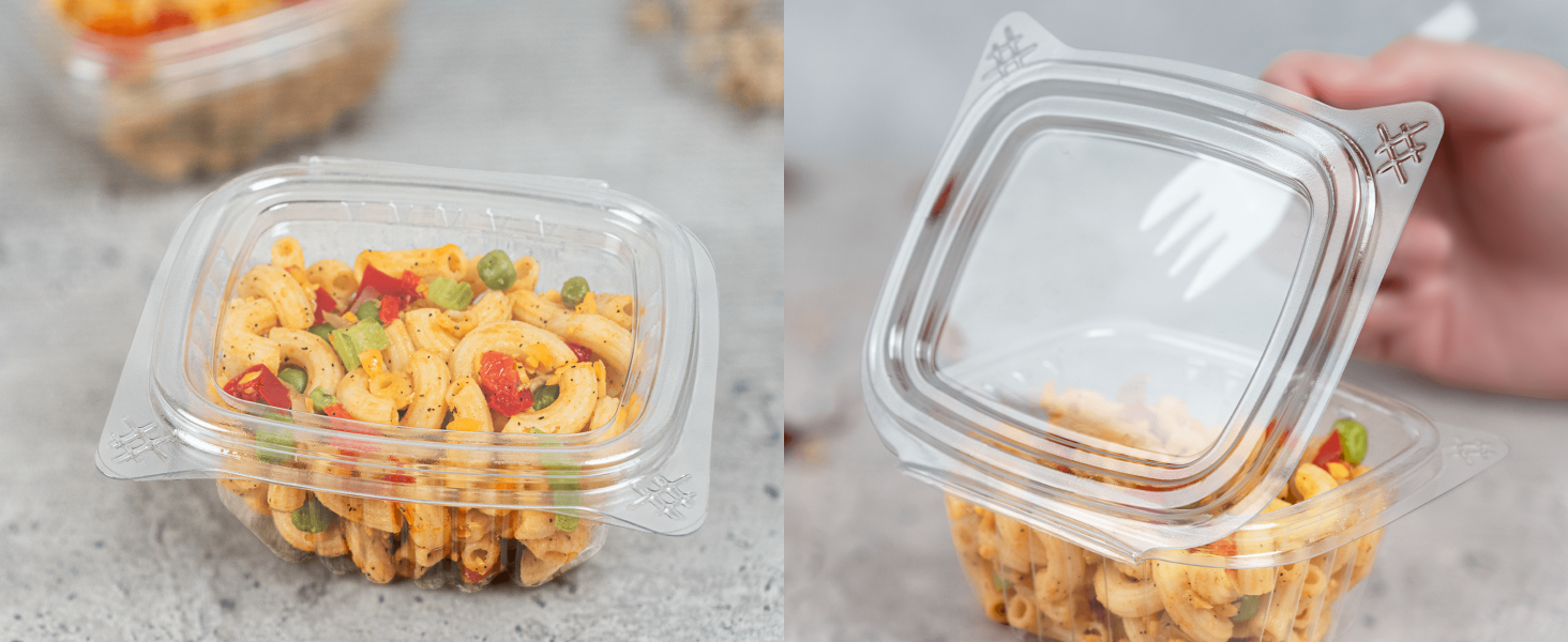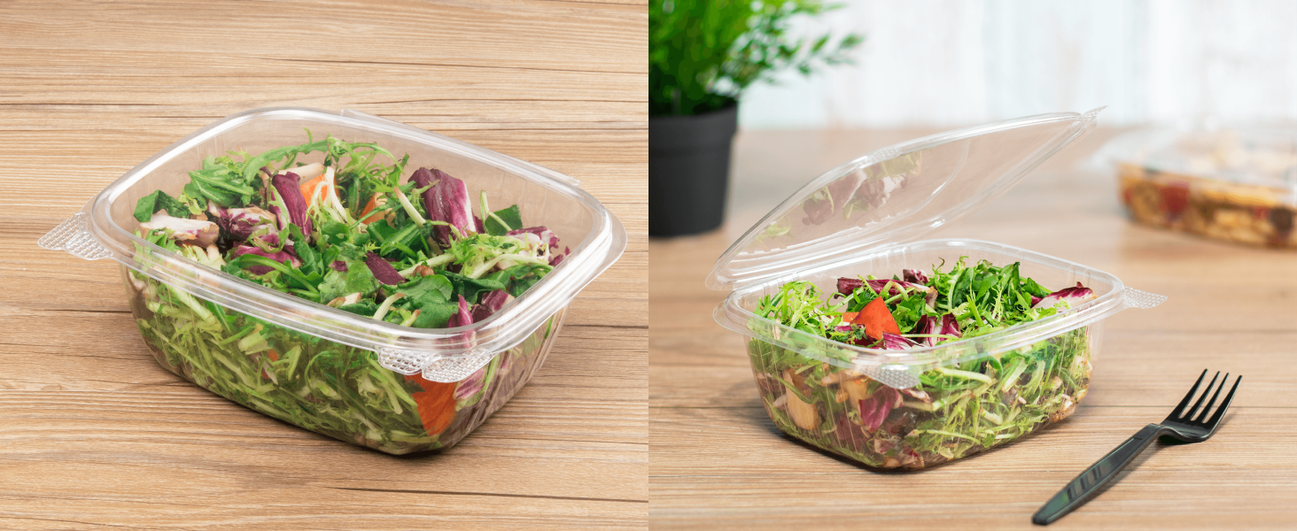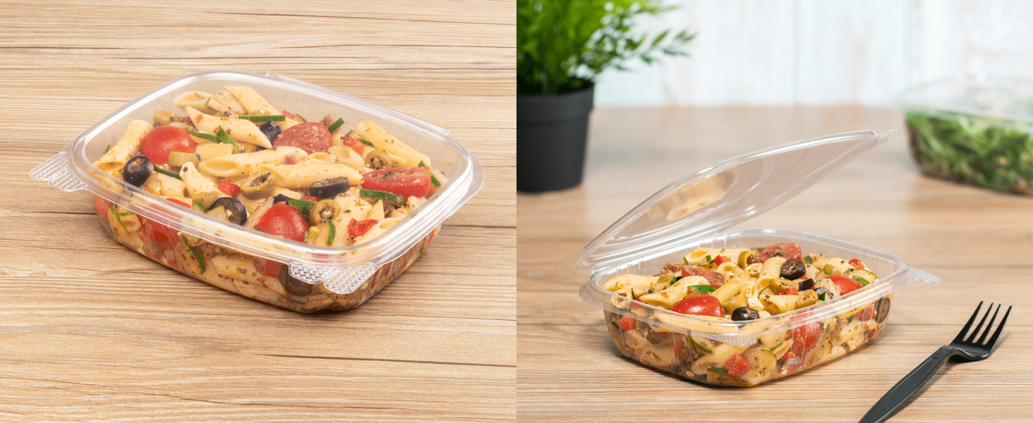 Karat PET Hinged Deli Container is perfect for pasta salads, fruit, deli sides and more! This hinged deli container is great for sealing and taking your food to go. Perfect for the deli counter or packing meals at home.
