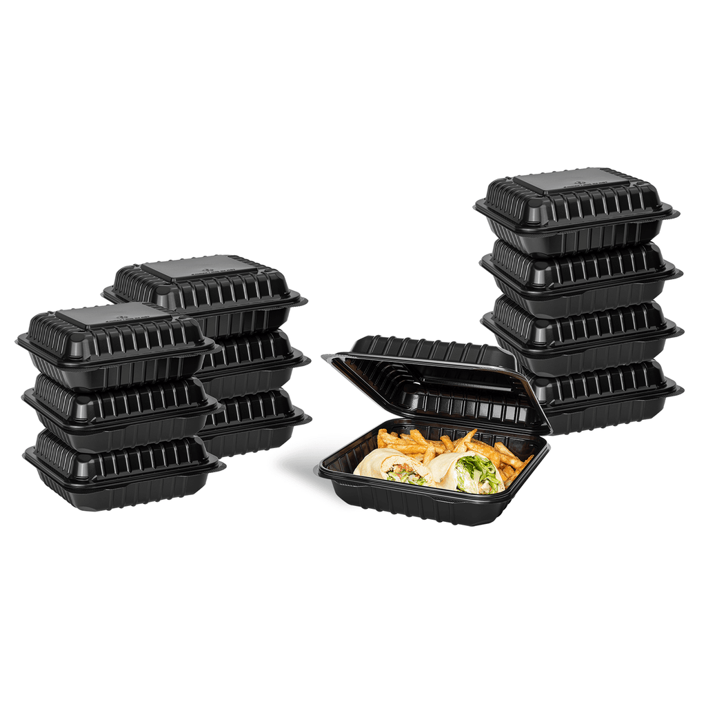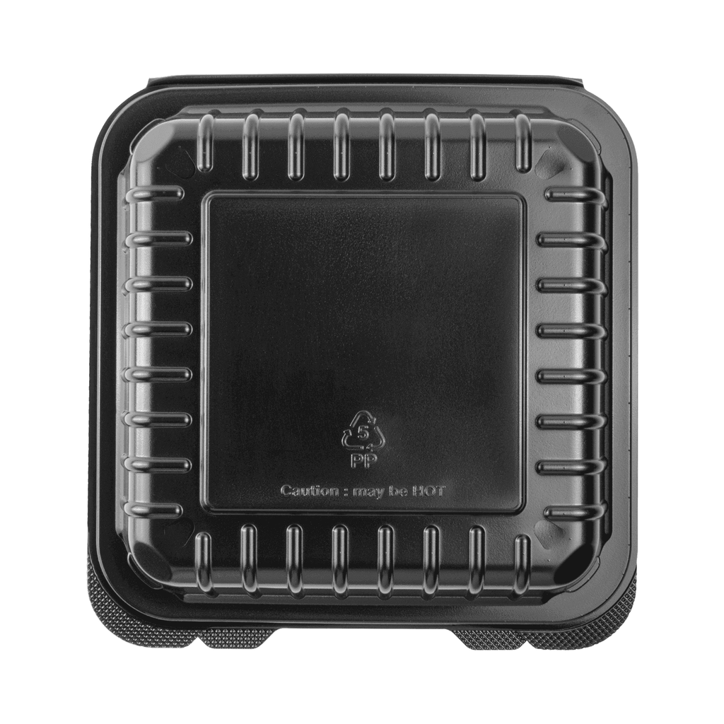 [250 ct] 8''x 8'' Hinged Food Containers | PP | Black