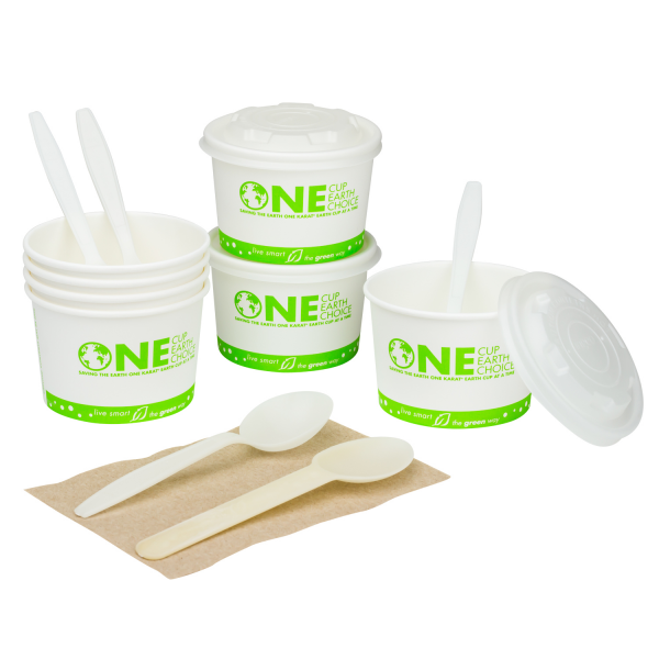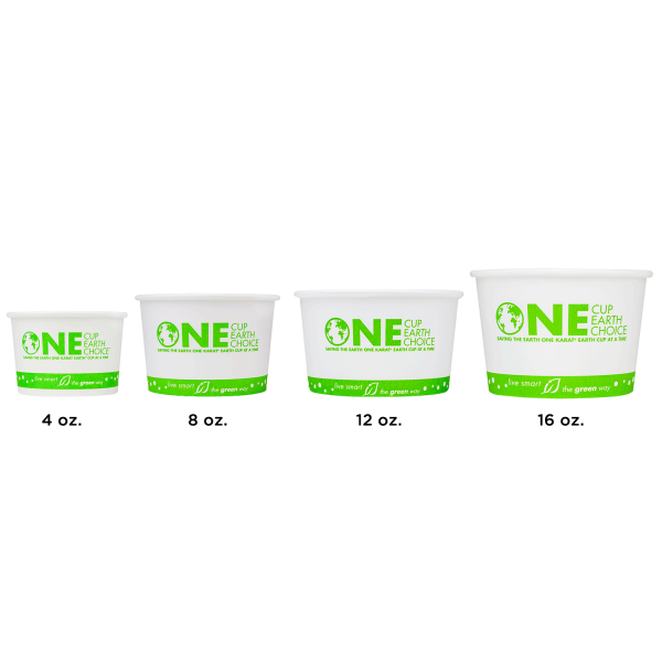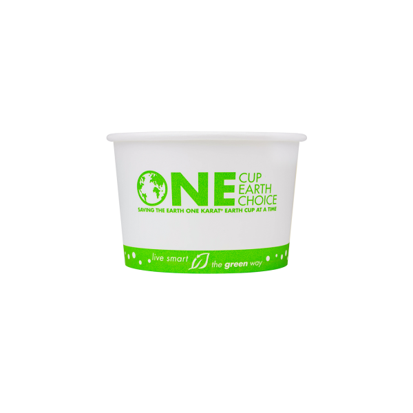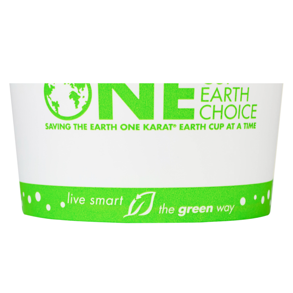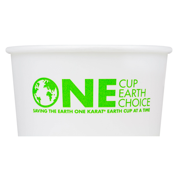 Karat Earth Paper Food Containers are made from renewable resources and designed specifically for use with hot or cold food. These eco-friendly paper food containers are great for ice cream, yogurt, gelato, noodles, and salad. Food containers come with Karat Earth's generic "One Cup, One Earth, One Choice" print.