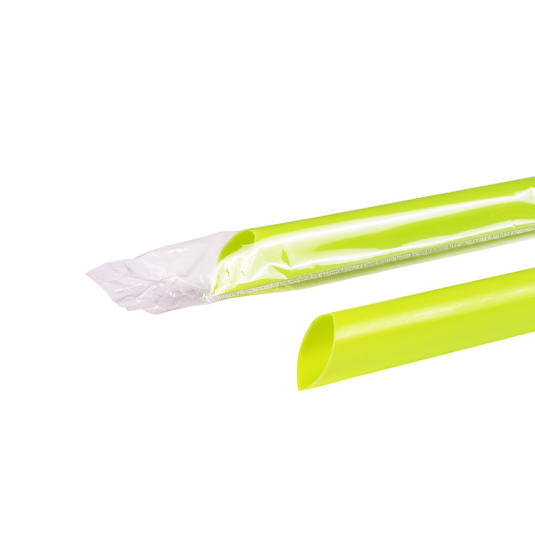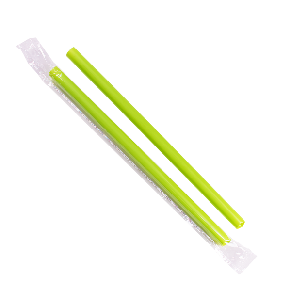 [1,600 ct] Boba Straws | Diagonal Cut | Individually Wrapped | Green (0.39" x 9")