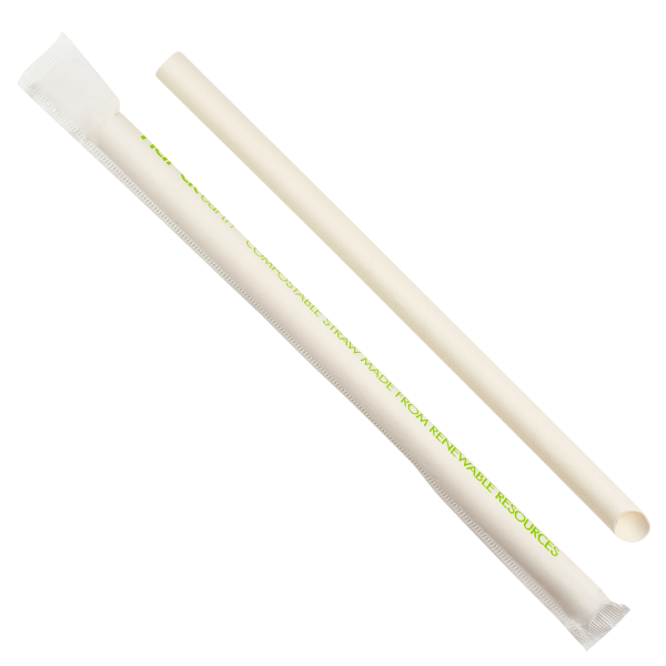 Karat Earth 9" Diagonal Cut Colossal Paper Straw Paper Wrapped, White - 1,600 pcs