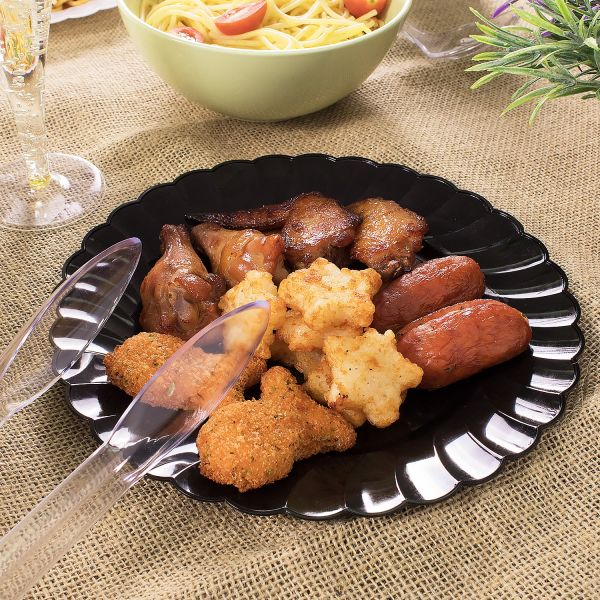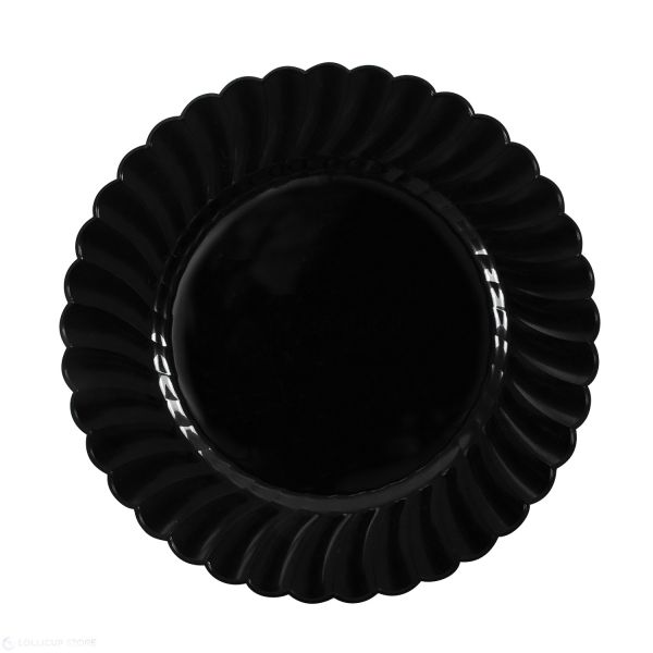 [120 ct] 9" Black Scalloped Plastic Plates | PS
