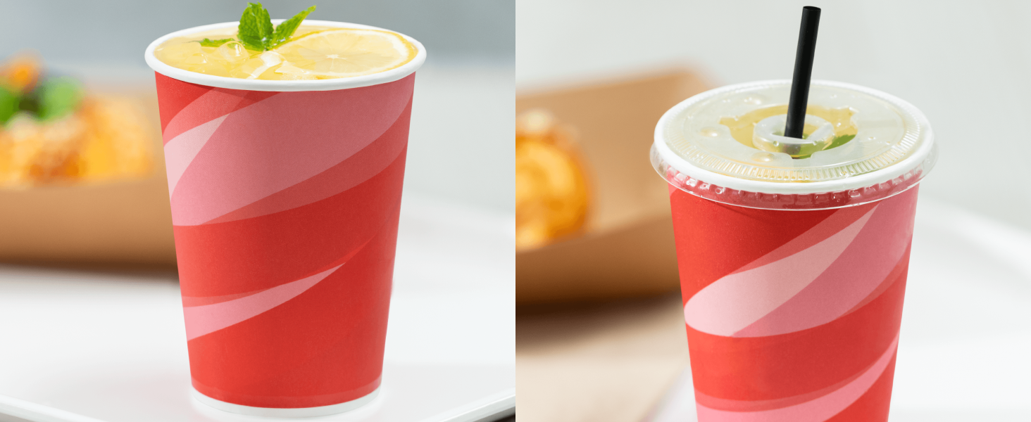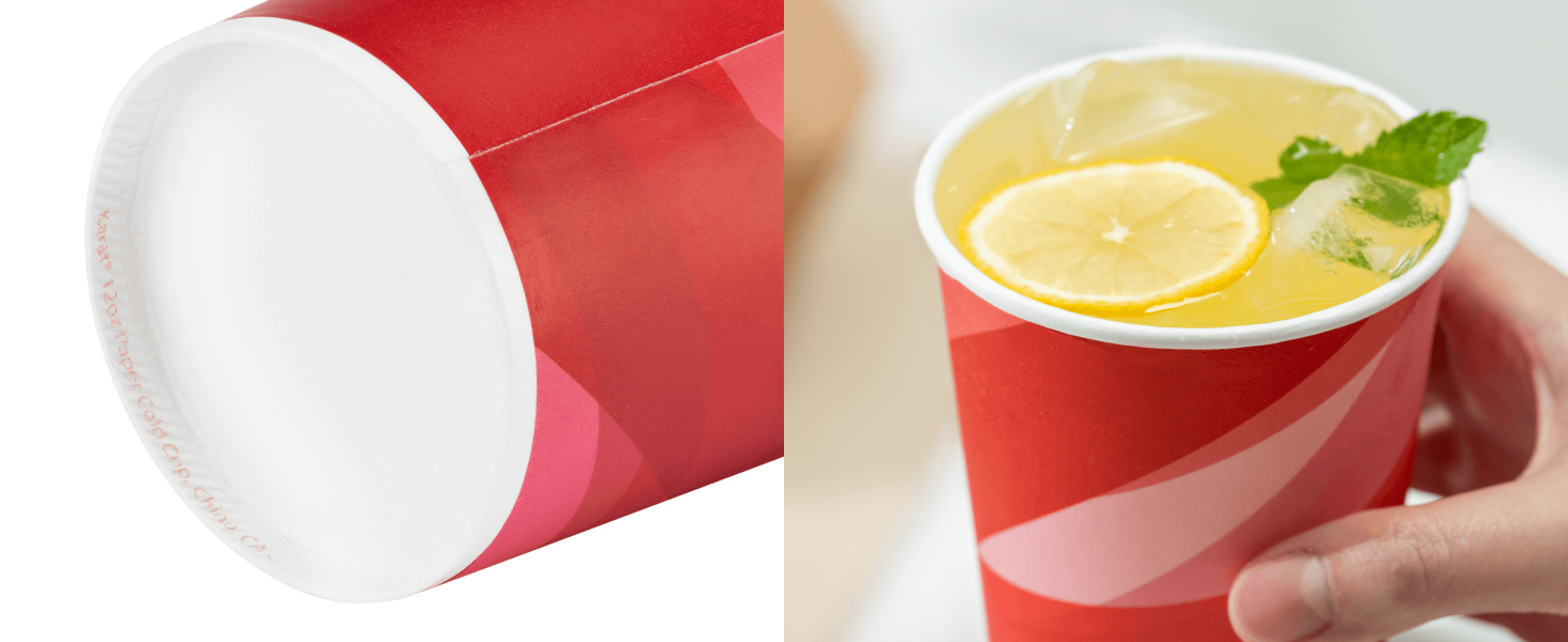 Karat Paper Cold Cups are designed for use with soda/fountain drinks and cold beverages. Great for restaurants and cafes. Offered in multiple prints and sizes. Double Poly lined to prevent leaking and for added resilience.