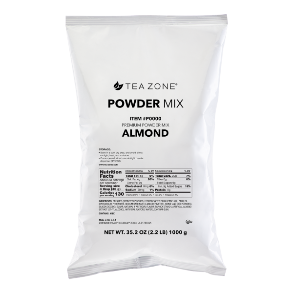 Tea Zone Almond Powder is made with natural flavors to bring you the best product possible. Almond Powder has a sweet creamy nutty taste for all your beverage or dessert needs. It’s perfect for smoothies, milk teas, flavored milk, and various blended drinks. Each bag is securely sealed, but to ensure uncompromised and sanitary usage, powders should be stored in a vacuum-sealed powder container, and always use a dry, clean powder scoop.