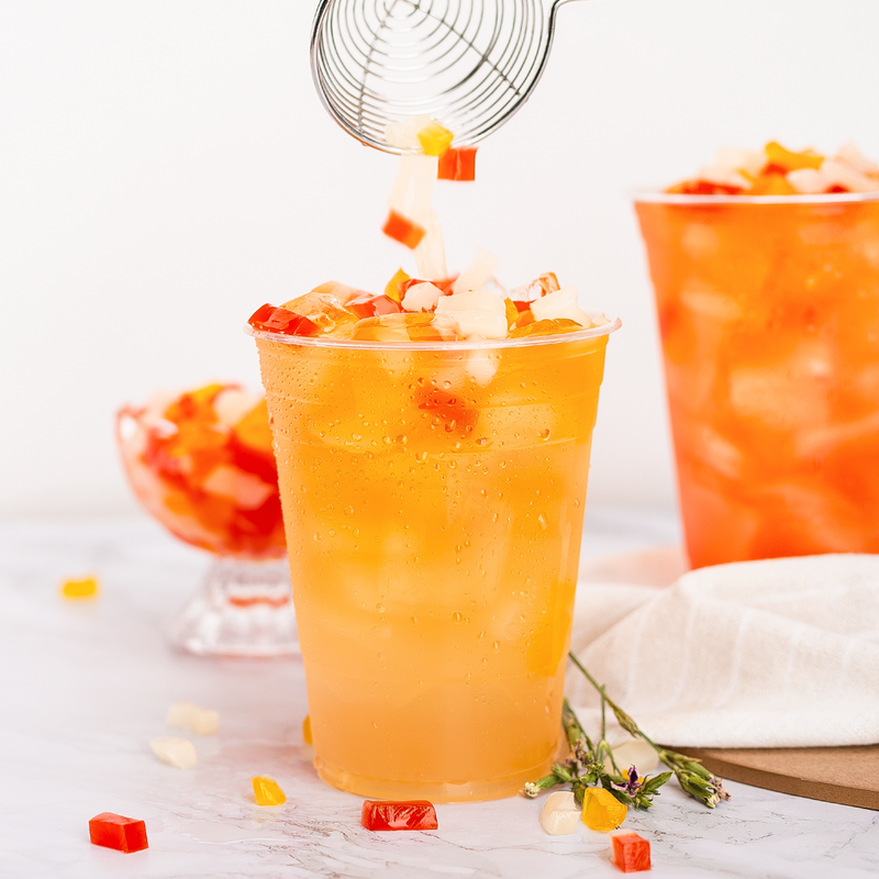 The Tea Zone Assorted Yogo Jelly comes with red, white, and orange jellies; the mix of vibrant colors will make your beverage look even more stunning. Add this jelly-like topping to any of your milk teas, flavored teas, or blended drinks - it will add a sense of visual pleasure with ease. It could also be an alternative for the popping pearls or traditional boba.