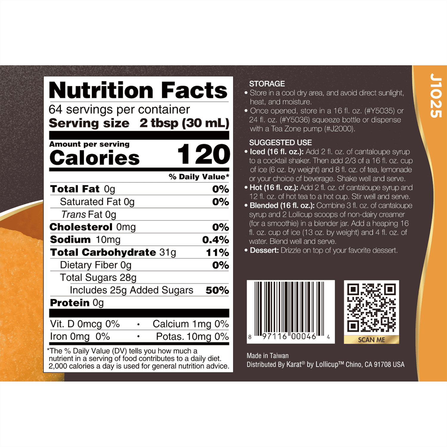 Made from real fruit ingredients, Tea Zone Cantaloupe Syrup is perfect for making slushies, smoothies, juices, flavored teas, frozen yogurt, shaved ice, and even alcoholic cocktails. Its versatility makes it a must-have ingredient for any beverage business or cafe. Enjoy bright, tropical flavors in your drinks with every pour.