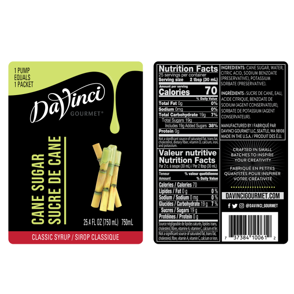 DaVinci Classic Cane Sugar Syrup - Bottle (750mL)