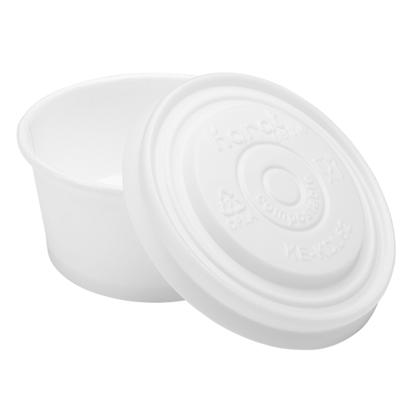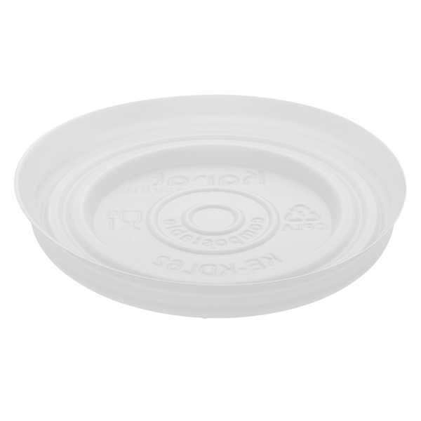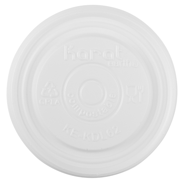 Complete your collection of eco-friendly restaurant supplies with the Karat Earth Compostable CPLA Flat Lid for 2oz portion cups. This lid creates a secure seal on the portion cup to prevent leaking during transport. The CPLA lid is made from renewable plant-based material and is strong enough to withstand hot food. When you're finished, simply toss it into a compost bin for commercial composting!