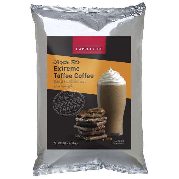 The Original Cappuccine Frappe is the perfect solution for any busy specialty beverage environment. Extremely simple to make, our famous powdered frappe mix can be used to prepare frozen, over ice or hot beverages and is unmatched for flexibility, efficiency and taste. Go for extreme flavor with pieces of sweet, buttery toffee paired with a hint of chocolate and mountain grown coffee. Extreme Toffee Coffee is one of Cappuccine's top sellers!