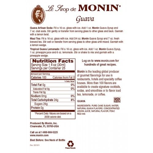 Guava is an emerging flavor of the tropics, with a pretty pink, sweet flesh and delicious exotic flavor. Capturing the essence and sweetness of the juicy Guava fruit, Monin Guava Syrup is a perfect thirst-quencher for those seeking a delicate beverage that's a step above the ordinary. Made with select ingredients and pure cane sugar, Monin Guava Syrup is a highly concentrated, authentic flavoring offering exceptional versatility for creating specialty beverages.