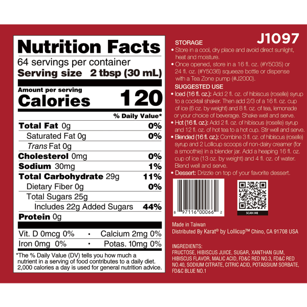 Fructose, Hibiscus Juice, Sugar, Xanthan Gum, Hibiscus Flavor, Malic Acid, FD&C Red No.3, FD&C Red No.40, Sodium Citrate, Citric Acid, Potassium Sorbate, FD&C Blue No.1