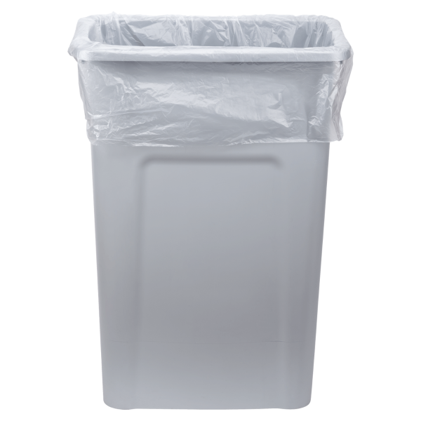 Karat® high-density, 55-60 gallon trash can liners are ideal for paper to lightweight trash and is not recommended for sharper objects. They are clear in appearance so that you are able to see the contents inside the bag. These 38” x 60” liners can be used in larger trash bins in areas like kitchens, restaurants, hotels, restrooms and many more. Manage your business’s waste with ease with our high-density trash can liners! Each package provides 200 trash can liners and has 8 rolls with 25 pieces in each.
