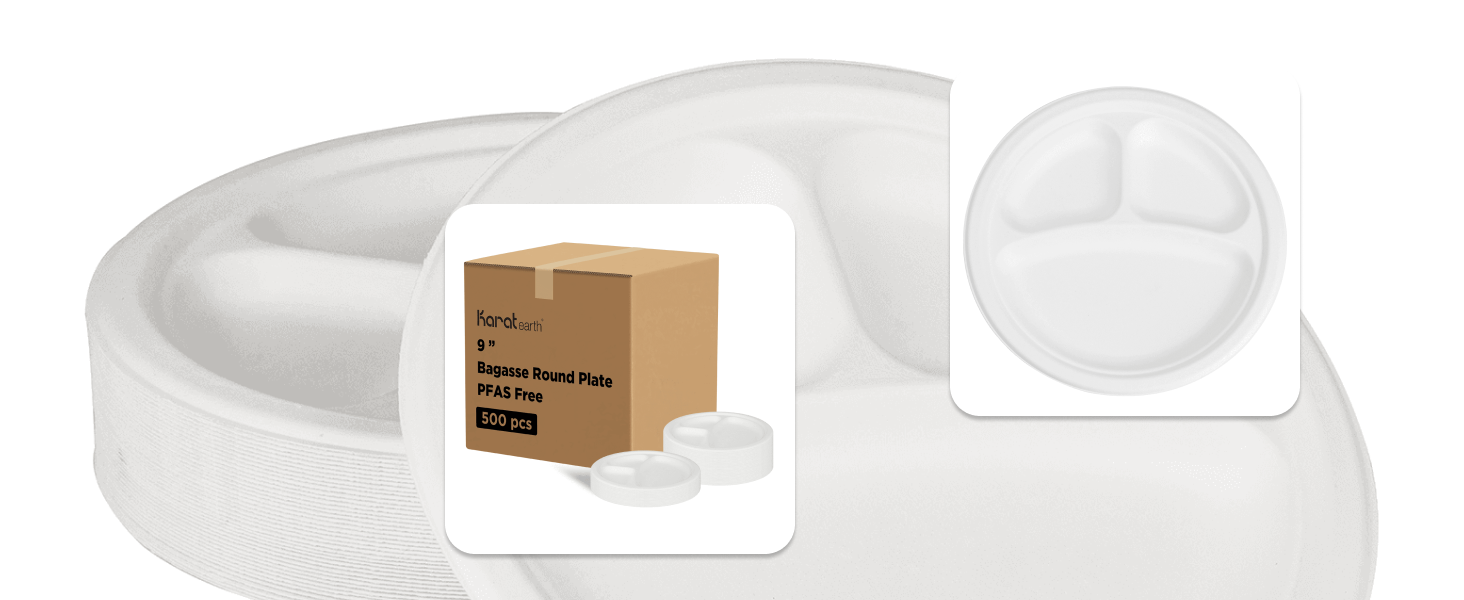 Karat Earth Molded Fiber Plates are the ideal eco-conscious solution, directly replacing fragile foam or standard plastic tableware. Molded fiber is derived from strong, durable plant-based fibers, a high-quality sustainable resource remaining after the sugar extraction process. This material ensures exceptional strength and reliability for all your meal service needs. Critically, these plates are guaranteed 100% PFAS-free, eliminating the risk of harmful chemicals leaching into food and establishing a safer standard for your table setting.