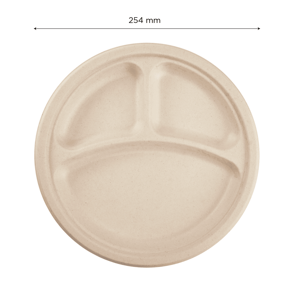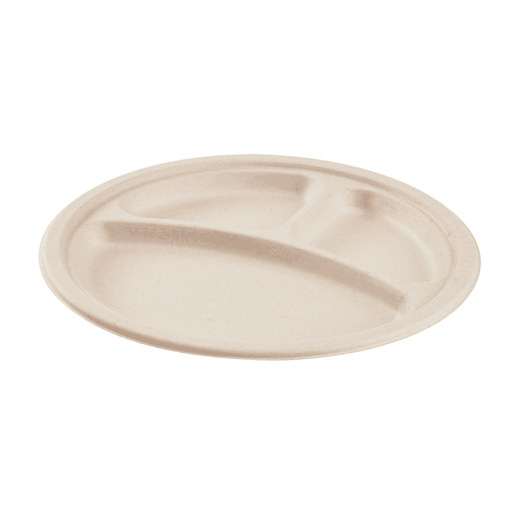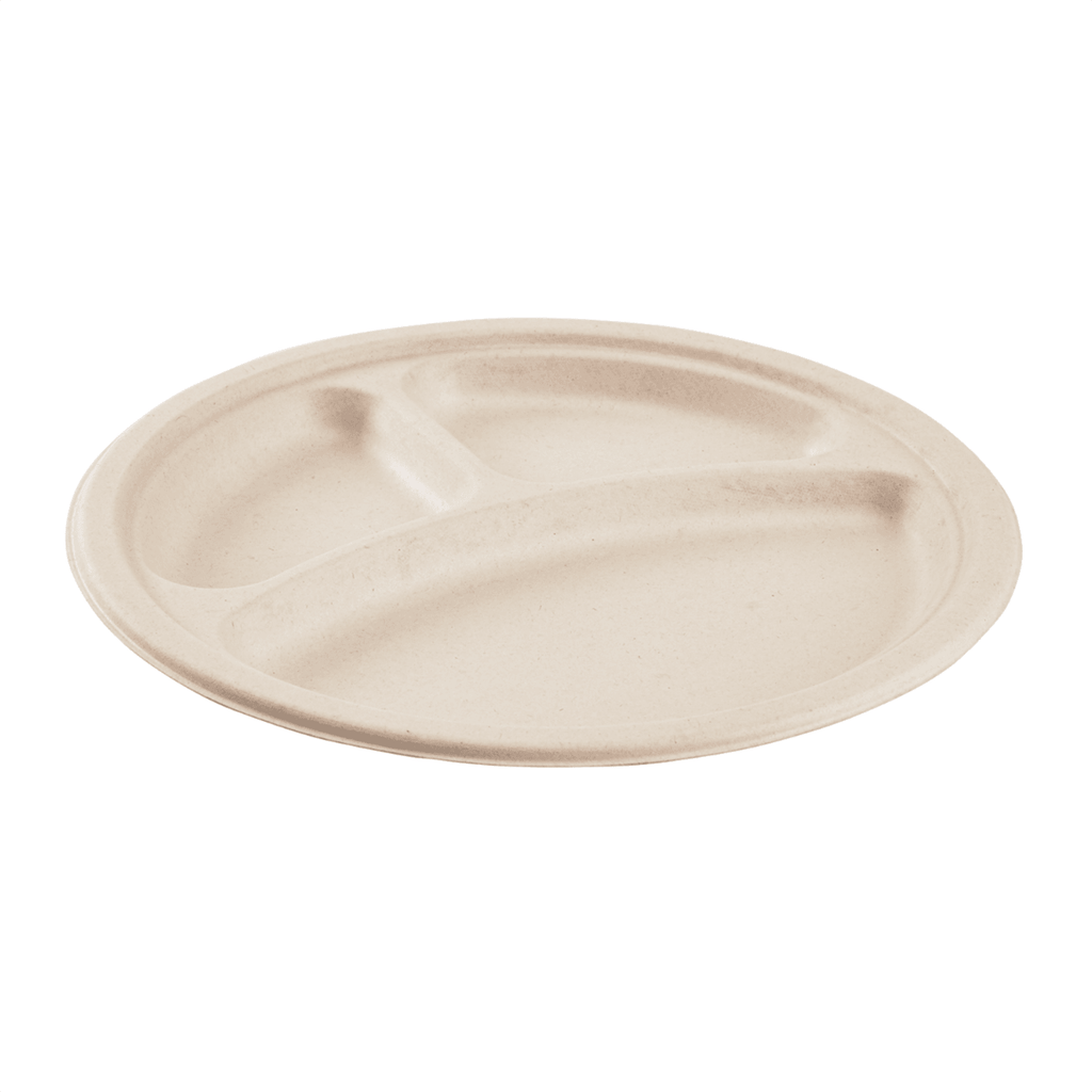 Karat Earth Molded Fiber 3-Compartment Plates are the strategic eco-conscious solution for serving complex meals with ease. Molded fiber is derived from strong, durable plant-based fibers, a high-quality sustainable resource that ensures exceptional serving reliability. Crucially, these plates are guaranteed 100% PFAS-free, eliminating the risk of harmful chemical leaching, thus guaranteeing a safer standard for your table setting. This advanced design is built to maintain the integrity and quality of every dish you serve.