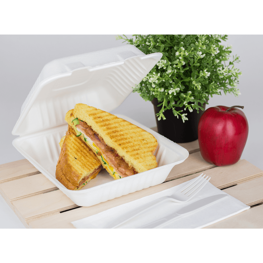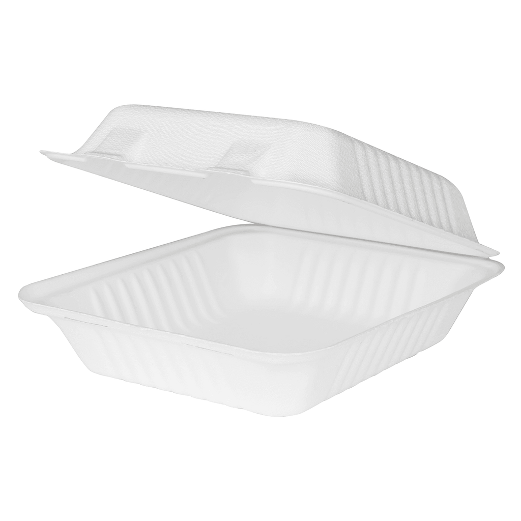 Karat Earth Molded Fiber Hinged Containers are the ideal eco-conscious solution for modern takeout, directly replacing conventional foam and plastic clamshells. Molded fiber is derived from strong, durable plant-based fibers—a sustainable resource from the sugar extraction process. Critically, these containers are guaranteed 100% PFAS-free, eliminating chemical leaching risks and ensuring food safety for your customers.